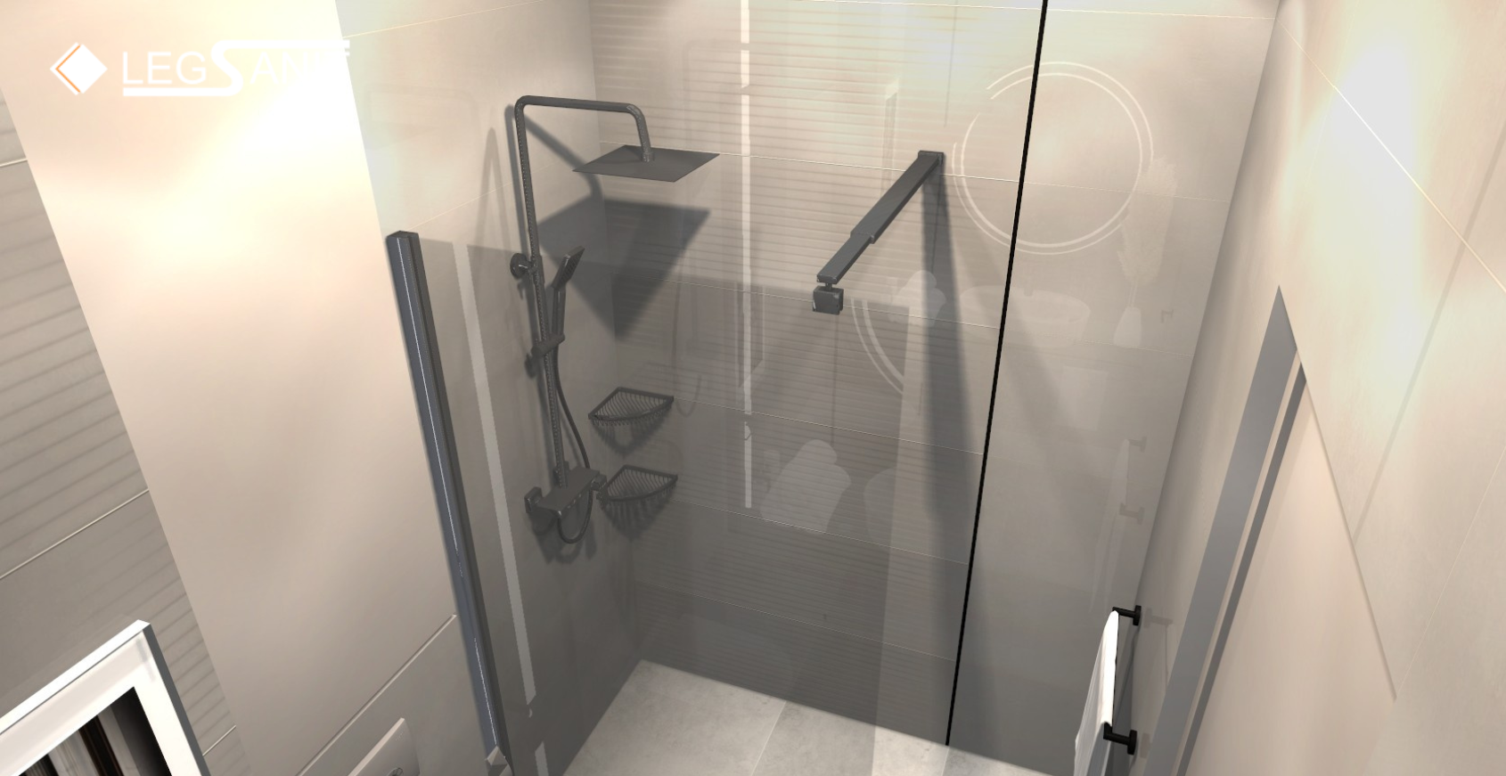 W części natryskowej stanęła ścianka Deante Kerria Plus 110 cm z chromowymi profilami. Na wybór tego modelu wpłynęło kilka kluczowych elementów:
