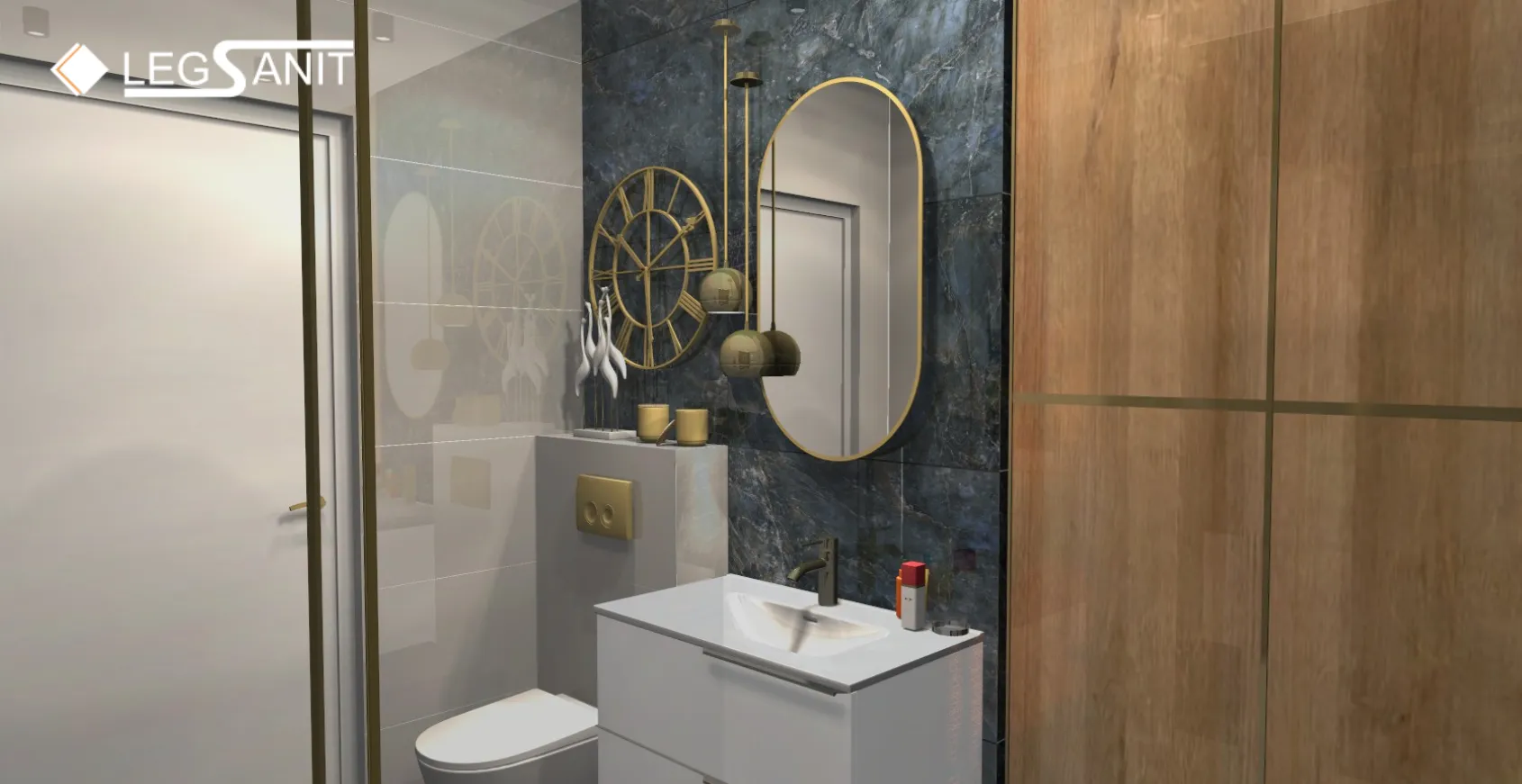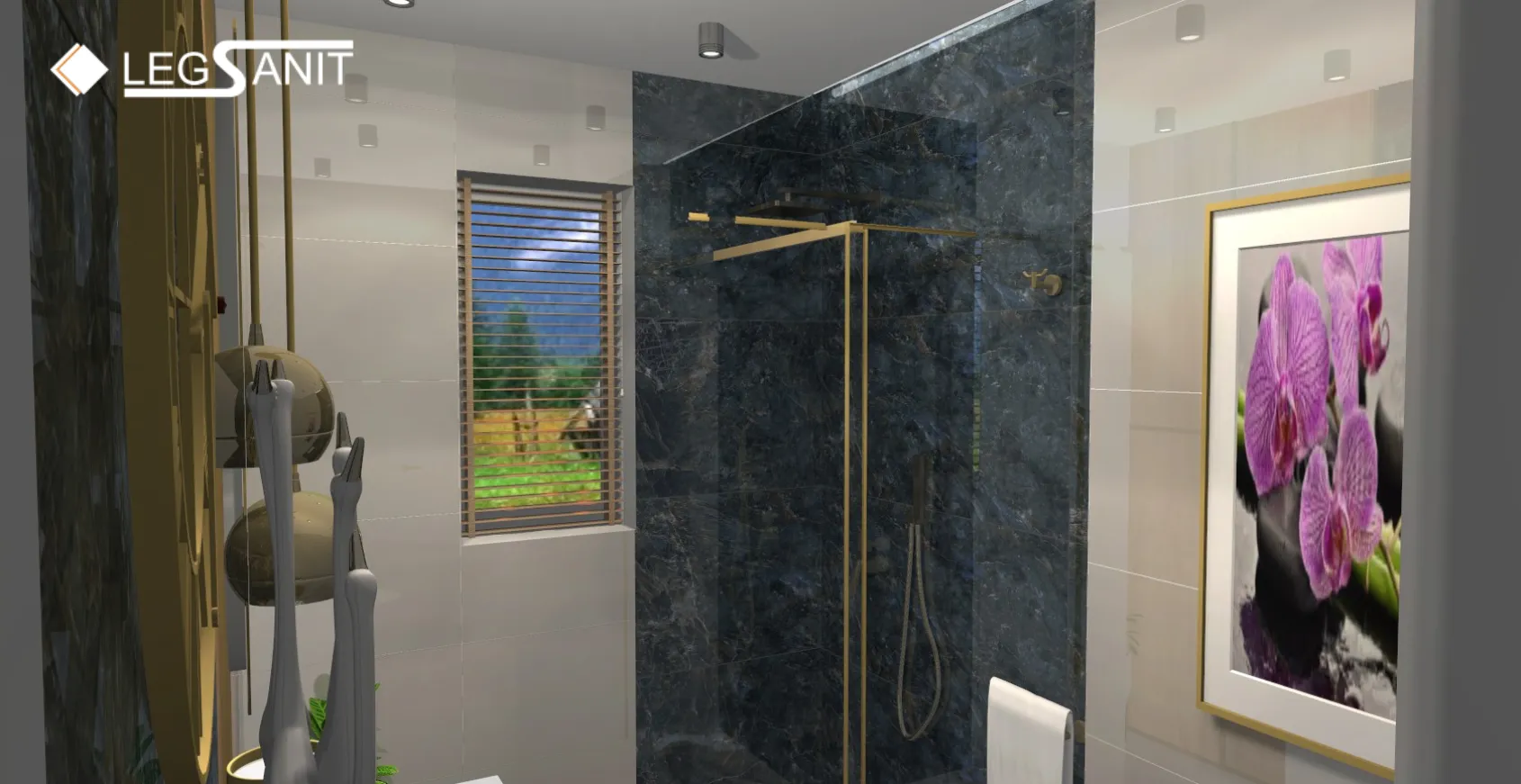 W poniższym projekcie łazienki o powierzchni 3,86 m² i wysokości 2,6 m postawiliśmy na połączenie jasnych powierzchni, eleganckich płytek i złotych akcentów, które nadają wnętrzu nowoczesnego charakteru. Każdy fragment łazienki został zaprojektowana tak, aby maksymalnie wykorzystać przestrzeń, zapewniając komfort codziennego użytkowania. Sprawdź, na jakie elementy wyposażenia zdecydowali się nasi projektanci we współpracy z właścicielami.